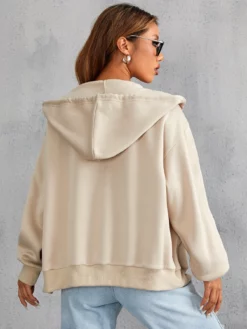 COZZY – Sweat-shirt à capuche thermique unicolore zippé Beige