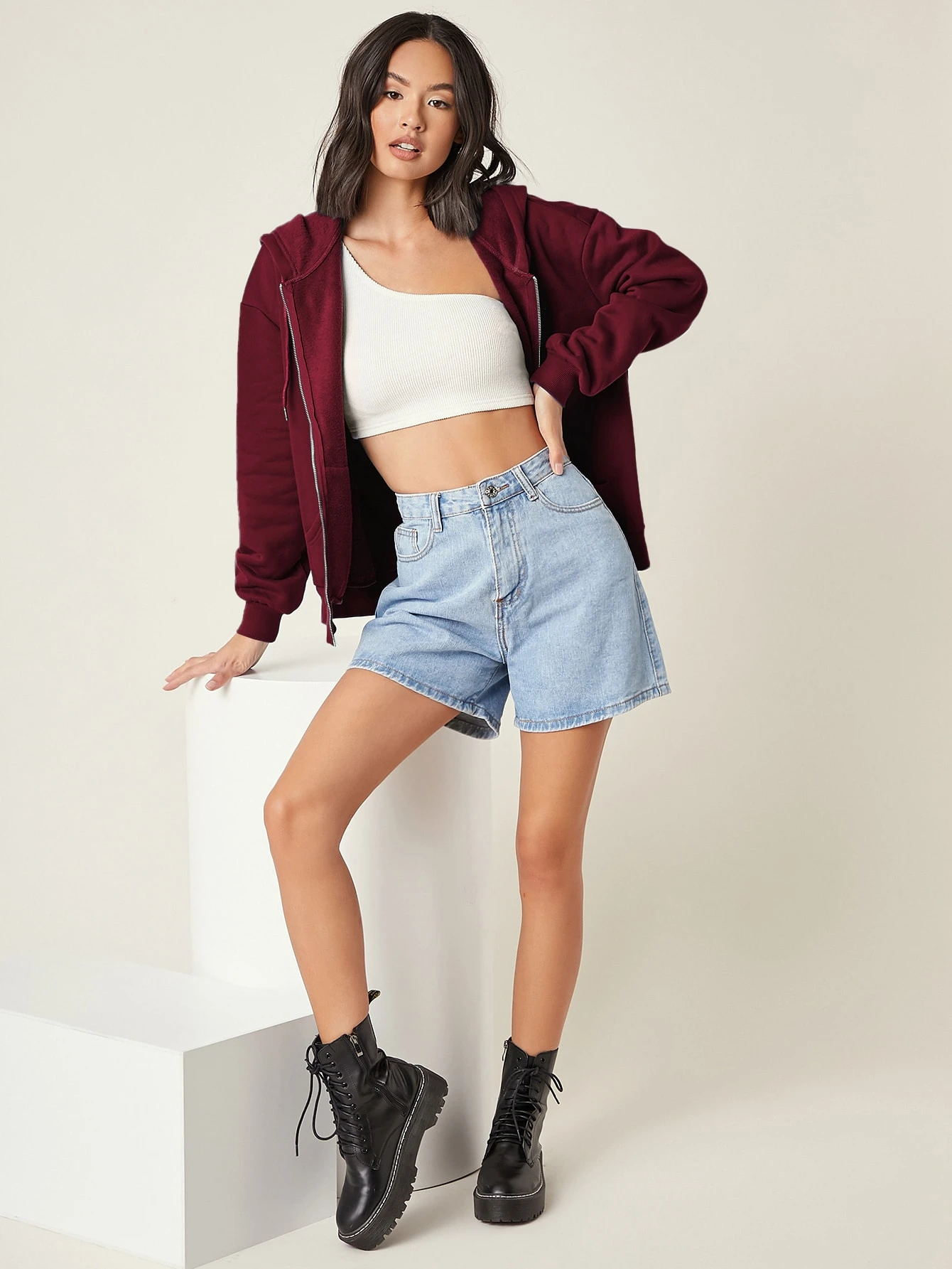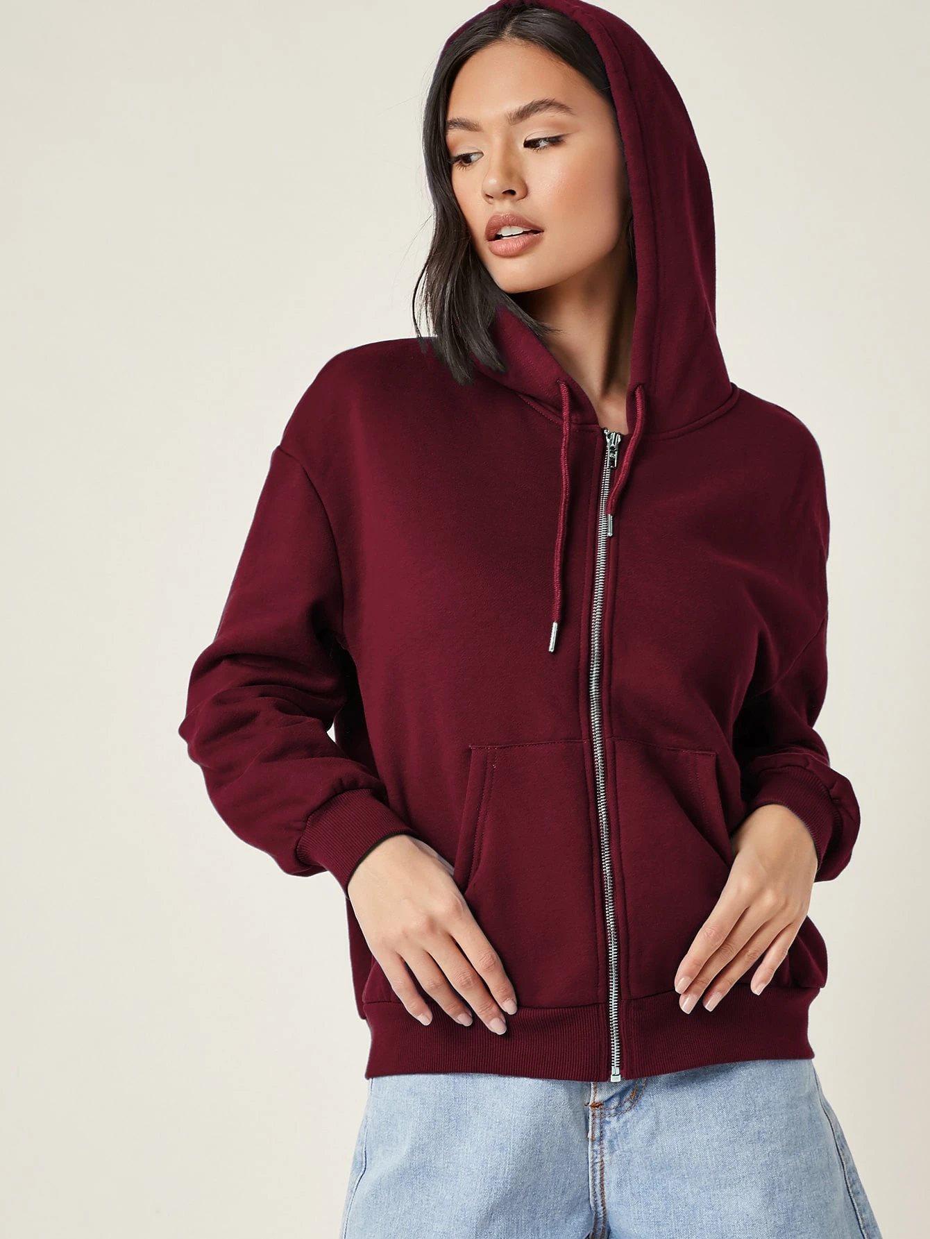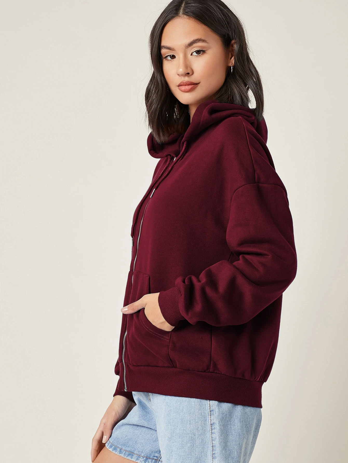 COZZY – BASICS Pull à capuche avec zip Bordeaux
