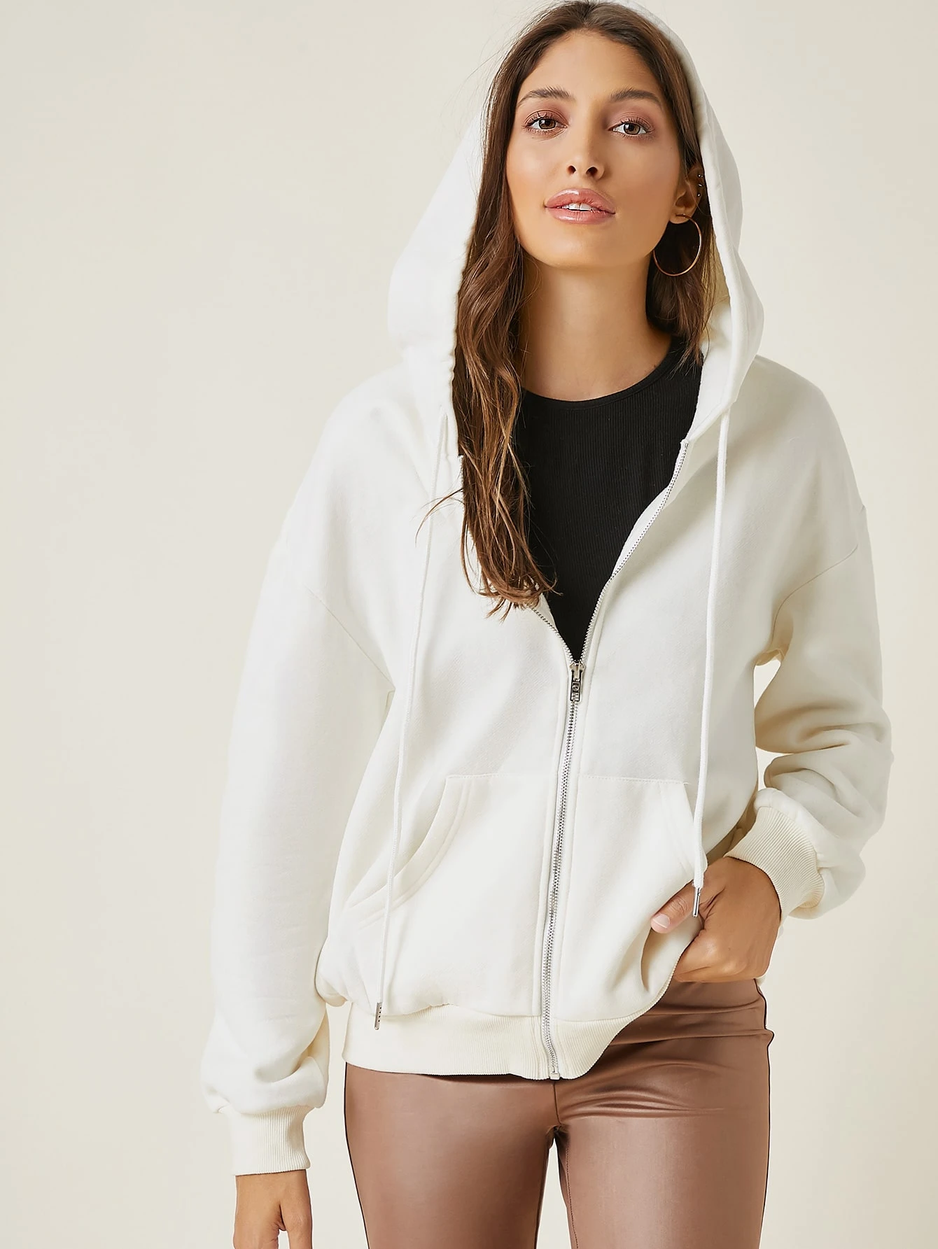COZZY – BASICS Sweat-shirt à capuche avec cordon et zip Blanc