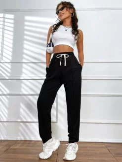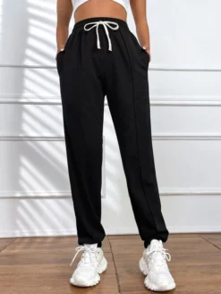 COZZY – Pantalon de survêtement à cordon à poche, Noir
