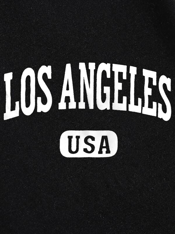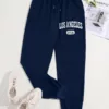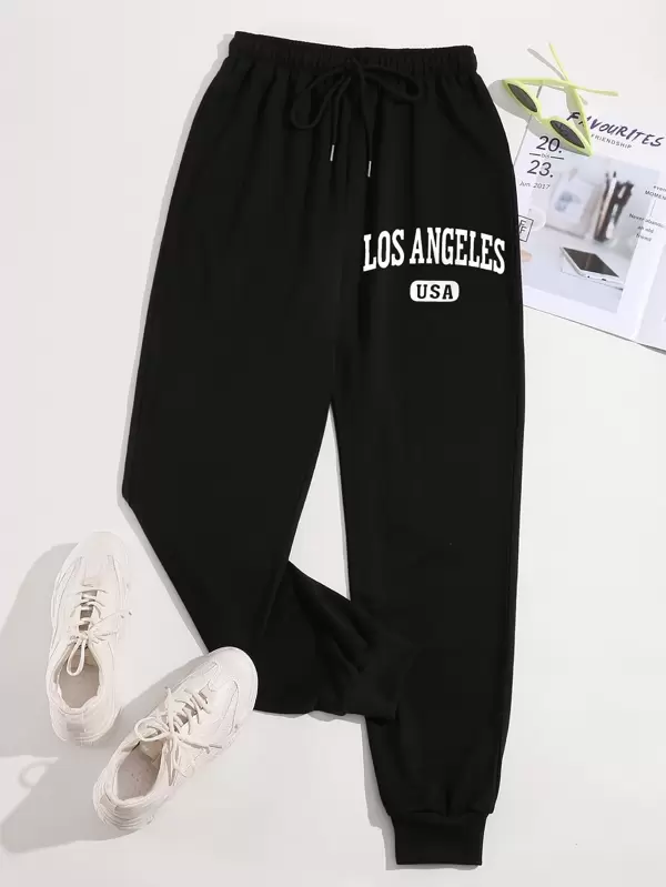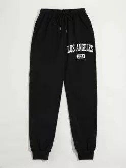 COZZY – Pantalon de survêtement lettre à cordon “LOS ANGELES”, Noir