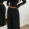 COZZY – Pantalon de survêtement unicolore à nœud évasé, Noir