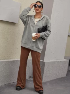 COZZY – Pantalon de survêtement unicolore à nœud évasé, Noir