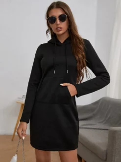 COZZY – Robe à capuche à poche kangourou à cordon Noir