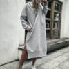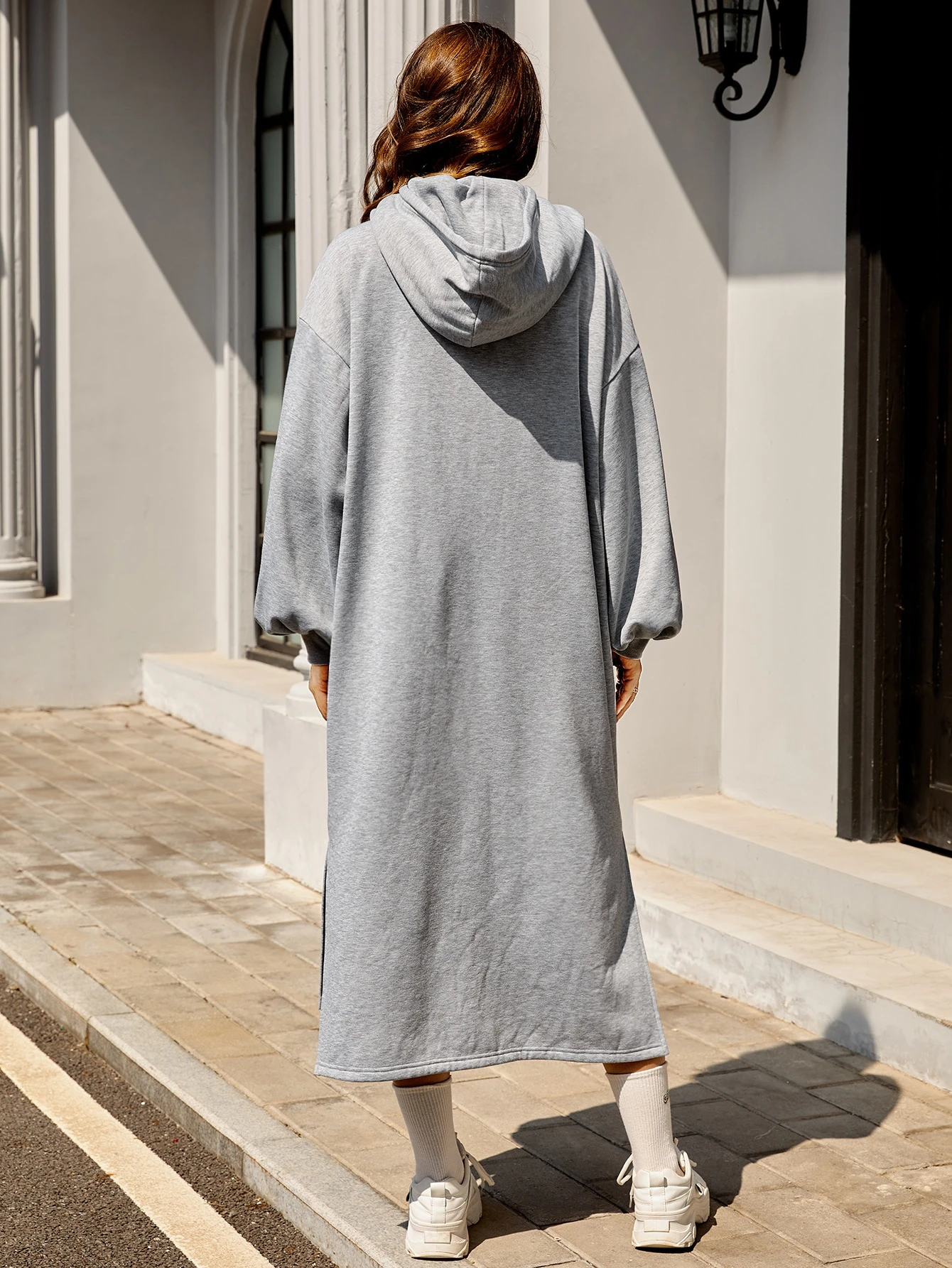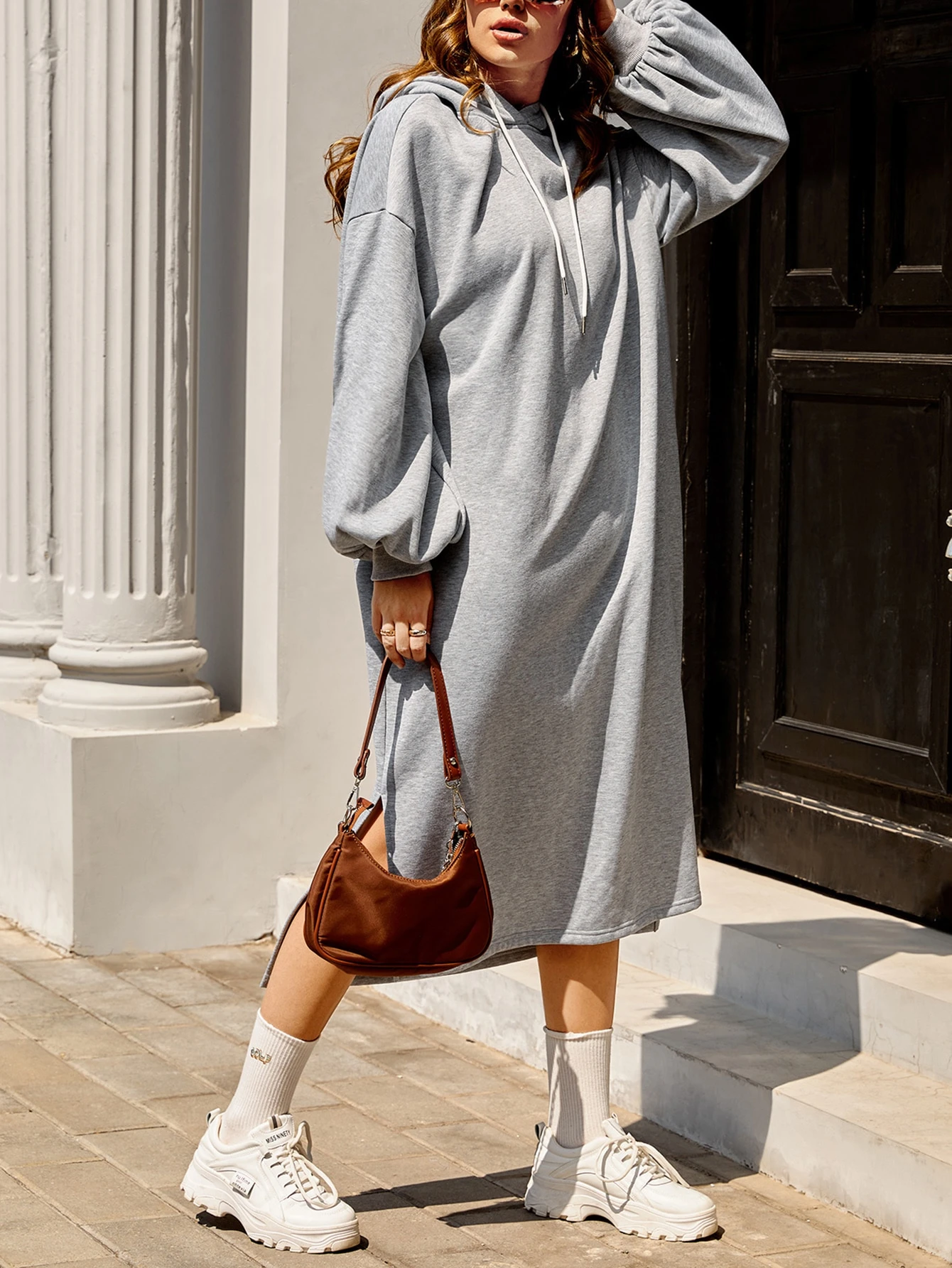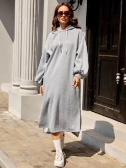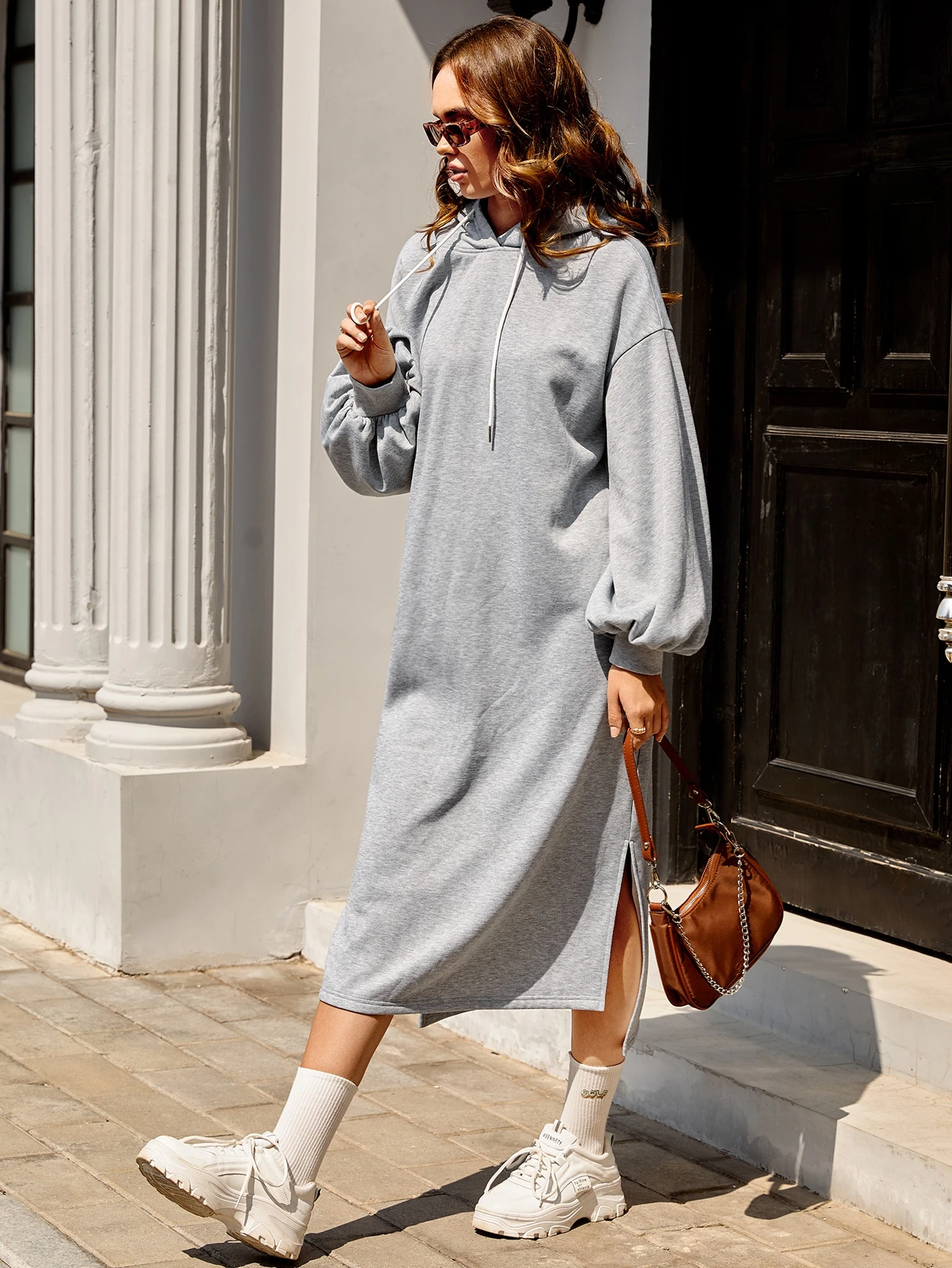COZZY – Robe sweat-shirt à manches bouffantes à cordon à capuche fendu Gris