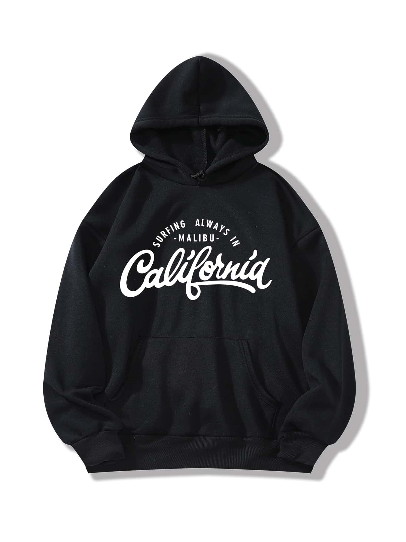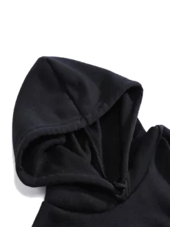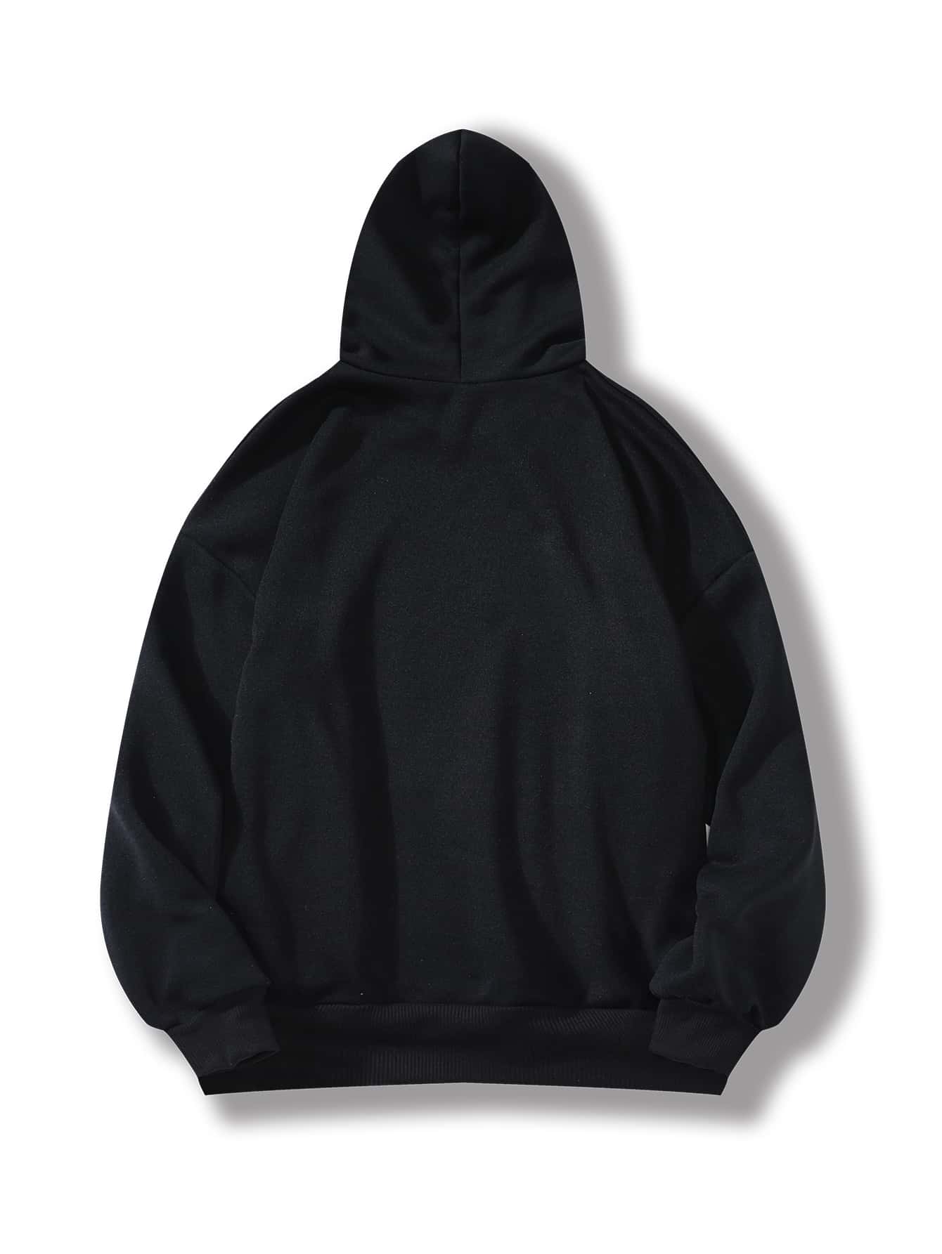 COZZY – Sweat-shirt à capuche à lettre à cordon à poche kangourou en Noir