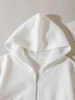 COZZY – Sweat-shirt à capuche court unicolore zippé Blanc