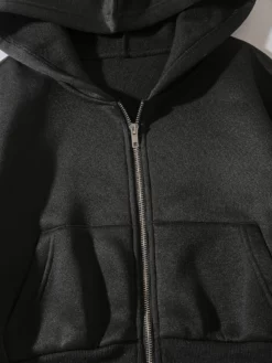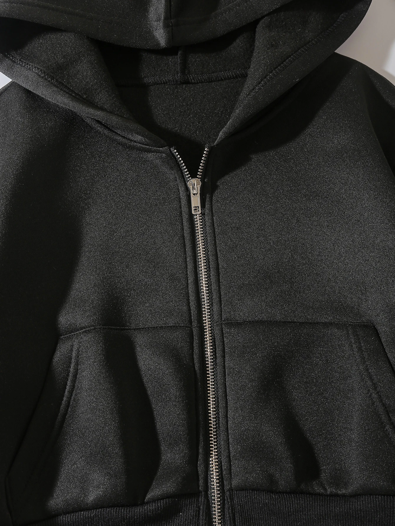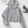 COZZY – Sweat-shirt à capuche court unicolore zippé Noir