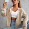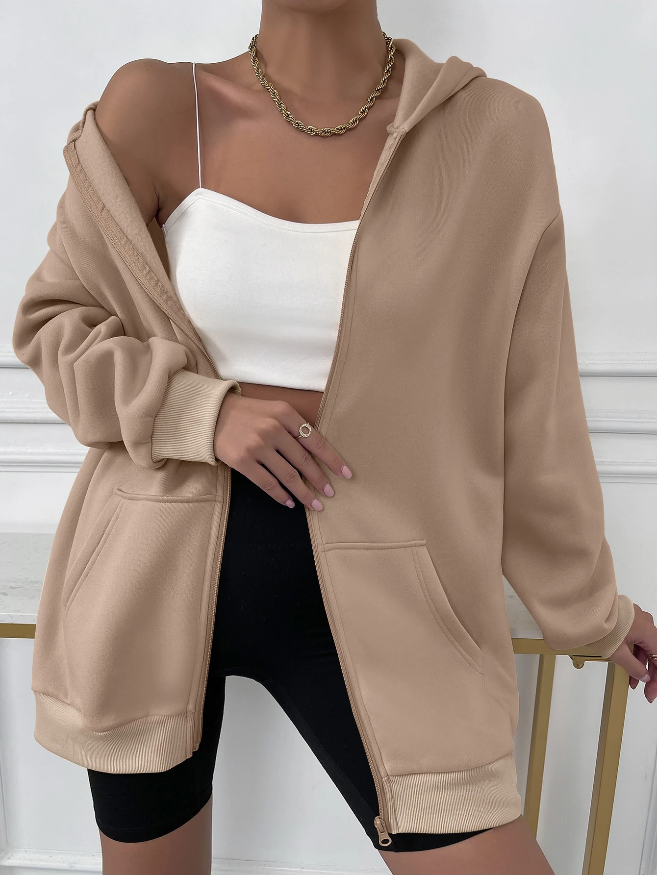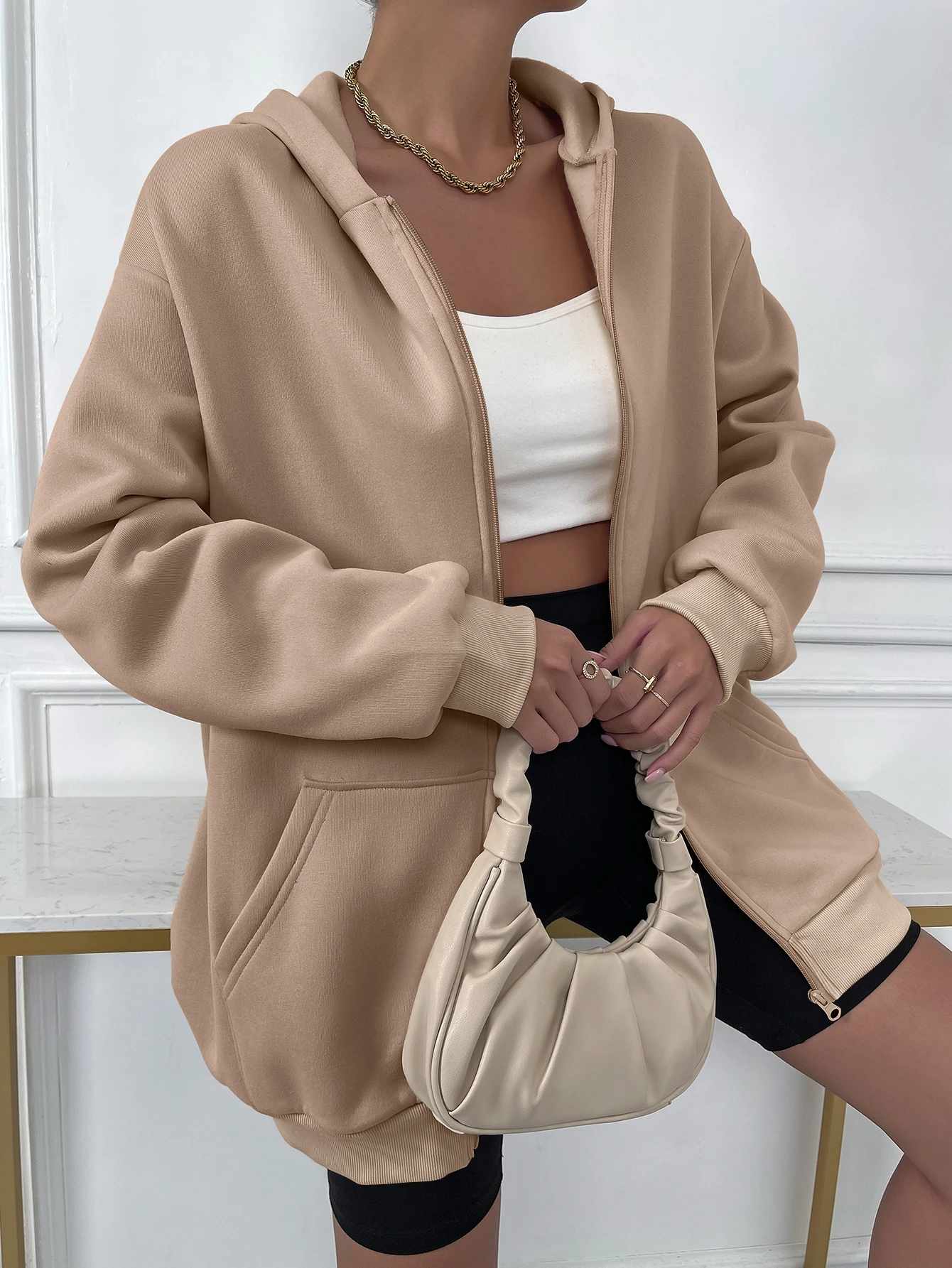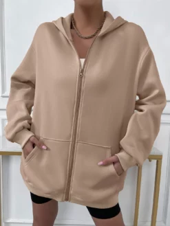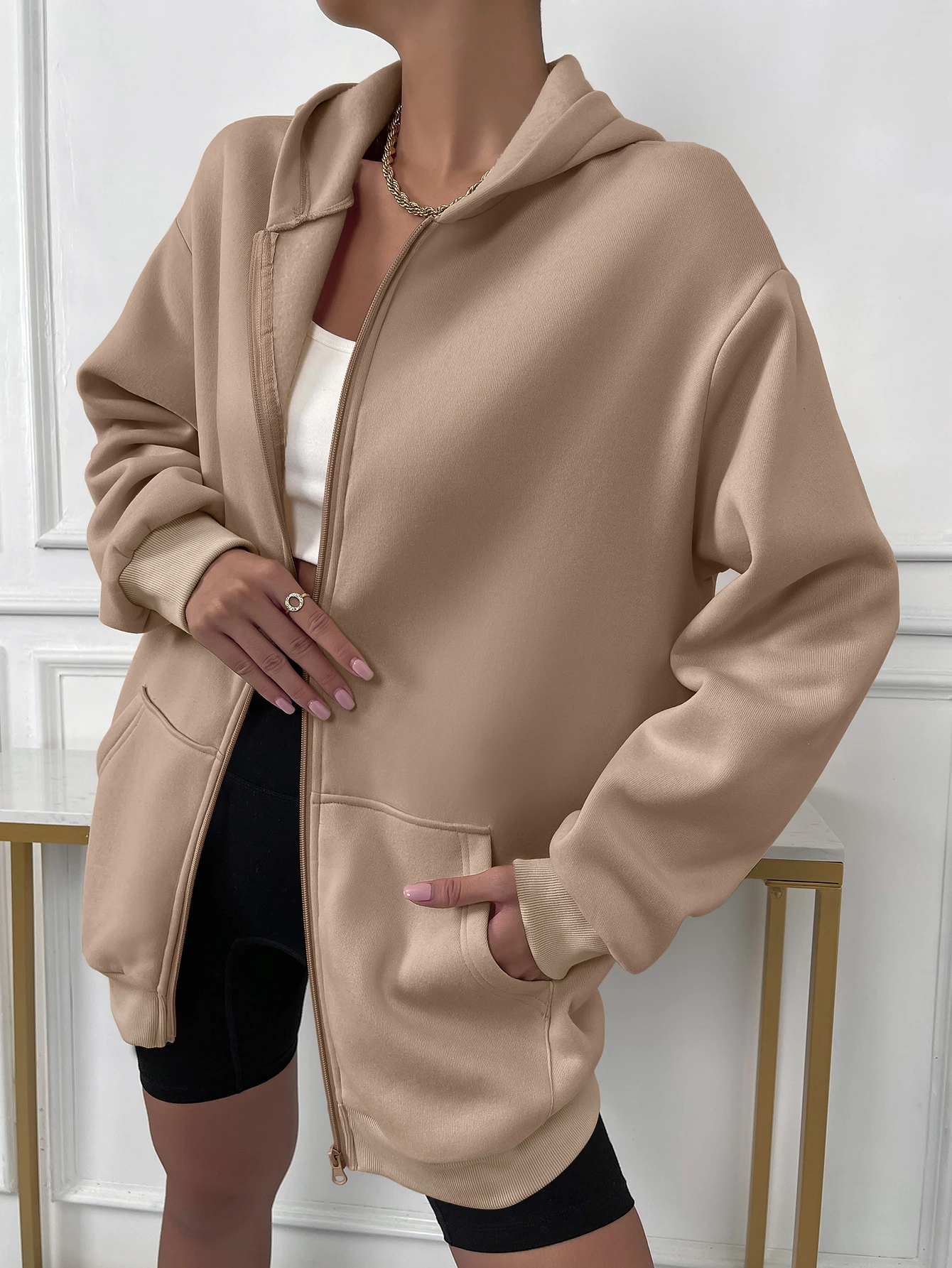 COZZY – Sweat-shirt à capuche thermique unicolore zippé Beige