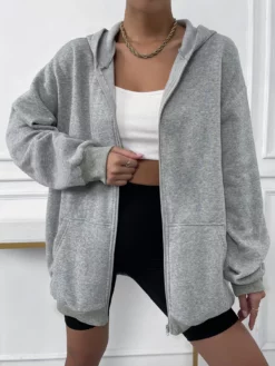 COZZY – Sweat-shirt à capuche thermique unicolore zippé Gris pâle