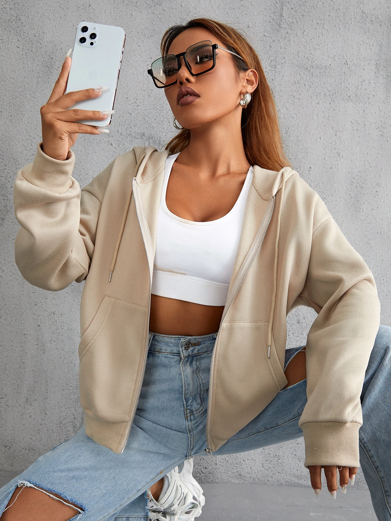 COZZY – Sweat-shirt à capuche unicolore à cordon Nude
