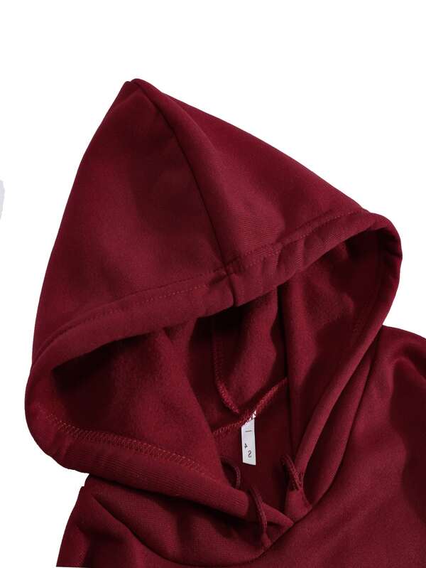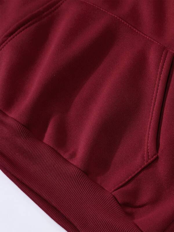 COZZY – Sweat-shirt à capuche unicolore à poche kangourou en Rouge foncé