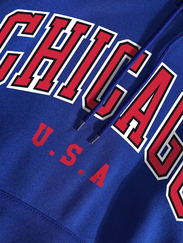 COZZY – Sweat-shirt thermique à lettres “CHICAGO USA” à poche kangourou à cordon en Bleu azur