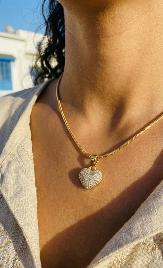 Maison Accessoire – Collier doré a motif Cœur a strasse