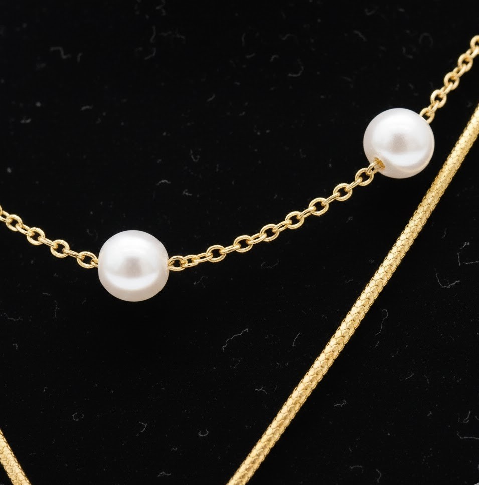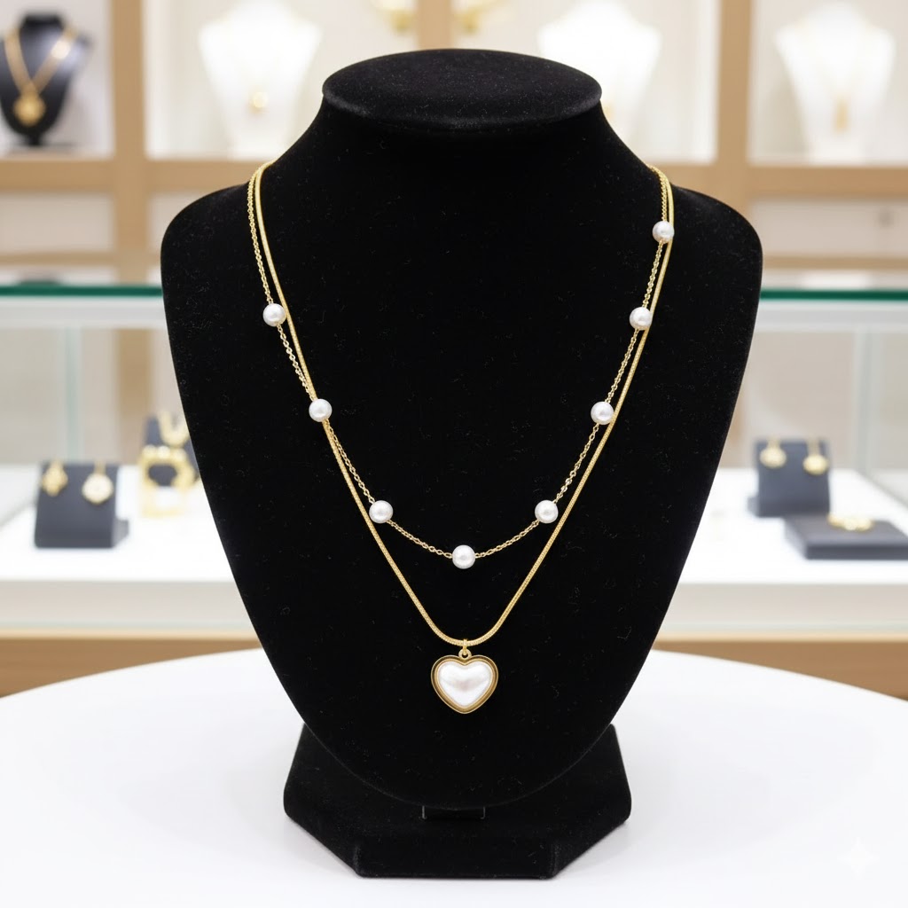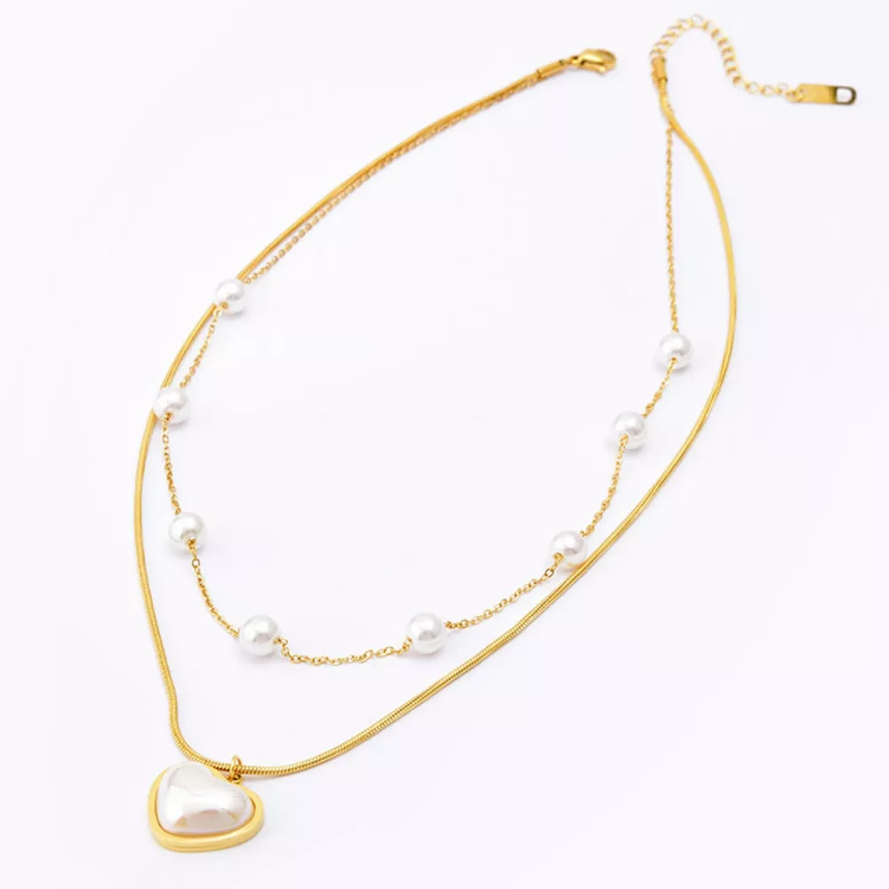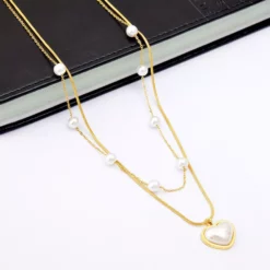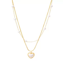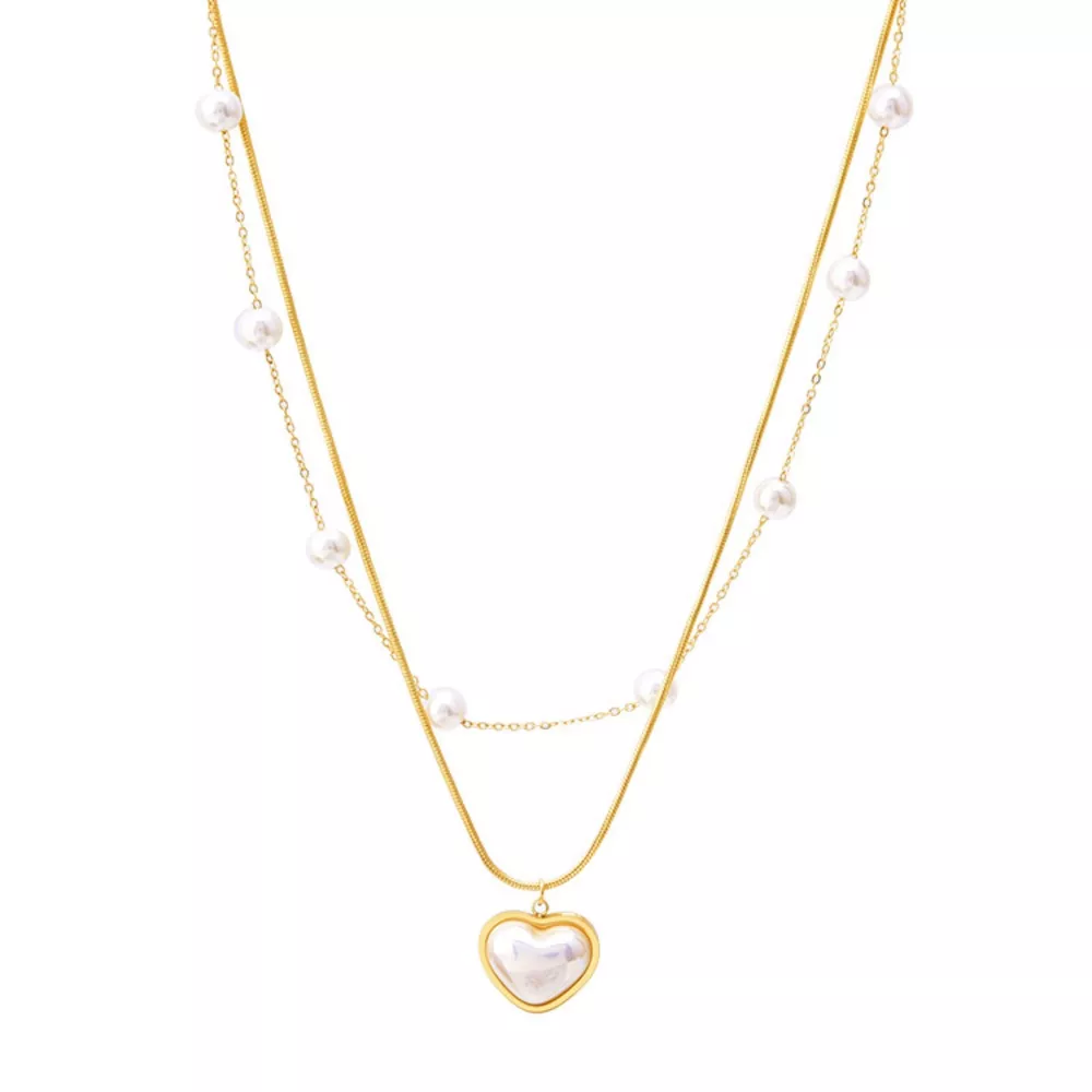 Maison Accessoire – Collier doré avec perles a motif cœur blanc
